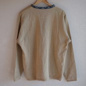 一見シンプルながら細部のギミックが光るスウェット。無地でありながら首元のチロリアン柄とサムホールがデザインアクセントになっています。