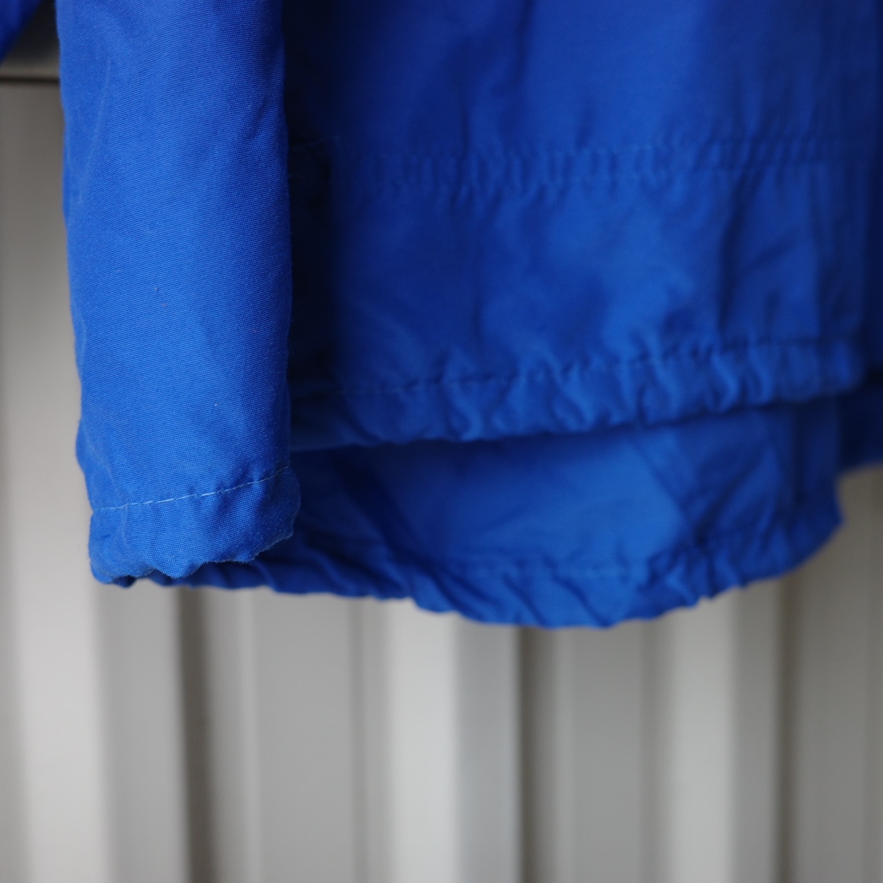 シャツのように軽やかなアノラック。目を引くカラーリングに加えて腹部のポケットがいいアクセントになっています。