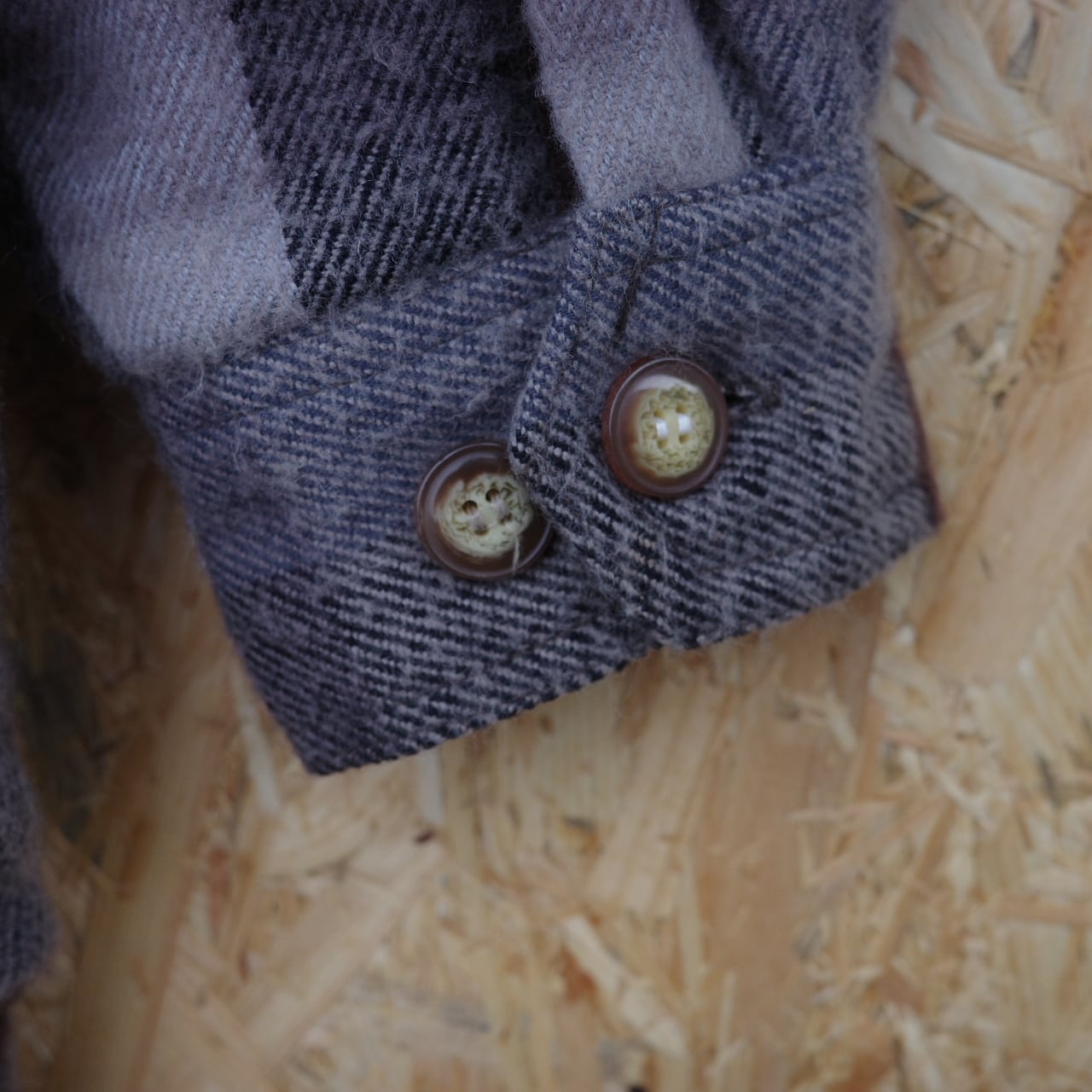 裏ボアで暖かく、焚き火前で重宝するアイテム。カラーもアウトドアにぴったりで、ボタンのデザインもニクい。